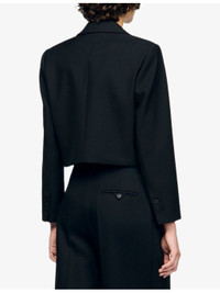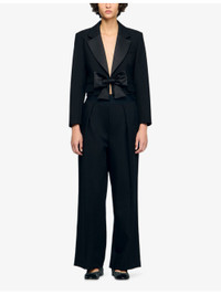 PRODUCT DETAILS - Sandro satin jacket - 55% polyester, 45% wool - Concealed fastening - Regular fit, peak lapels, long sleeves, oversized bow embellishment at the front, cropped - True to size - Model is 5ft 9in/1.75m and wears a size UK 8 - Midweight, non-stretch Ref: R04501197