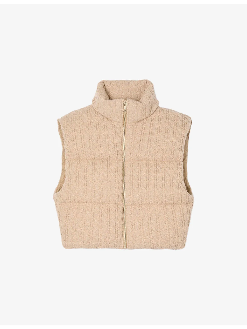 Short Sleeveless Cable-Knit Wool Puffer Jacket