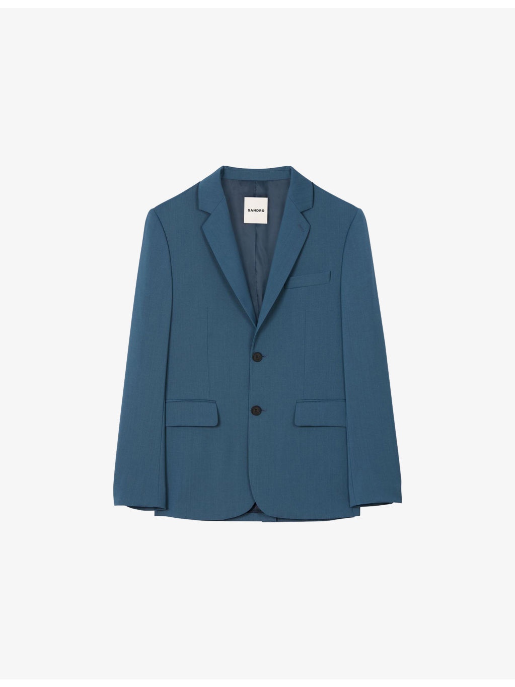 PRODUCT DETAILS - Sandro wool blazer - 100% wool - Button fastening - Regular fit, single-breasted, notch lapels, long sleeves, buttoned cuffs, side pockets - Dry clean - True to size - Model is 6ft 2in/1.88m and wears a size UK 38 - Midweight, non-stretch Ref: R04416810