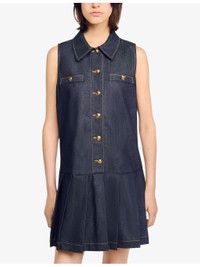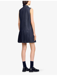 PRODUCT DETAILS - Sandro denim mini dress - 100% cotton - Button fastening - Regular fit, collar, sleeveless, chest pockets, pleated skirt - Dry clean - True to size - Model is 5ft 9in/1.75m and wears a size UK 8 - Midweight, non-stretch Ref: R04490516