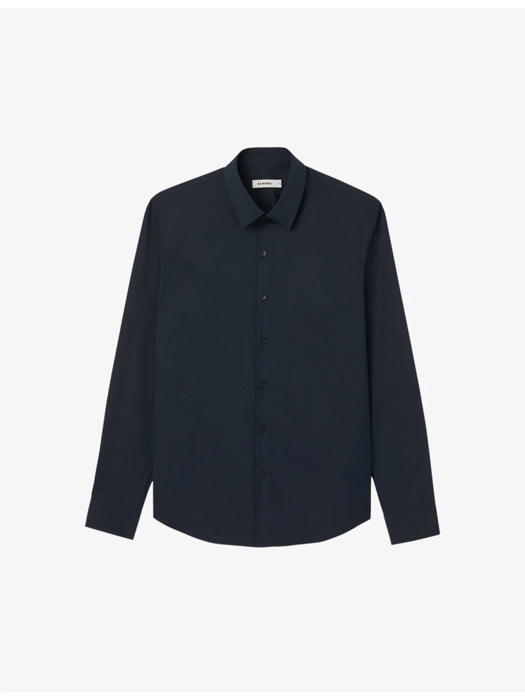 PRODUCT DETAILS - Sandro stretch cotton-blend shirt - 78% cotton, 18% polyamide, 4% elastane; buttons 100% vegetable ivory - Exposed button fastening at front - Spread collar - Slim-fit, long sleeves, buttoned curved cuffs, curved hem - Machine wash mild - Model is 6 ft/1.83 m and wears a size medium - Lightweight, slight stretch