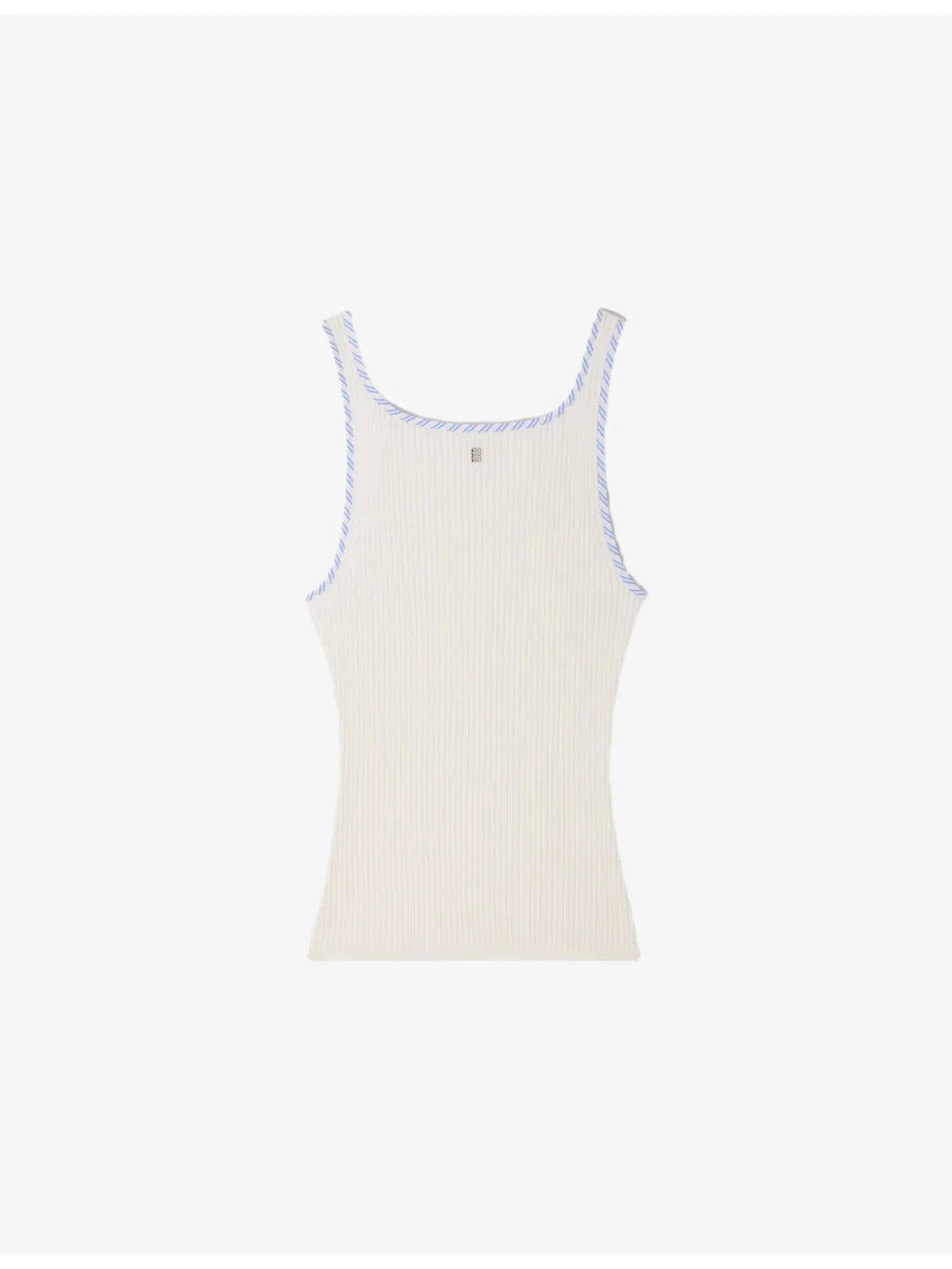 PRODUCT DETAILS - Sandro knitted vest top - 55% viscose, 26% lyocell, 13% polyamide, 6% silk - Slim fit, square-neck, sleeveless, branded hardware to chest, contrast trim, ribbed texture - Hand wash - True to size - Model is 5ft 9in/1.75m and wears a size UK 8 - Lightweight, slight stretch Ref: R04598557
