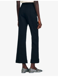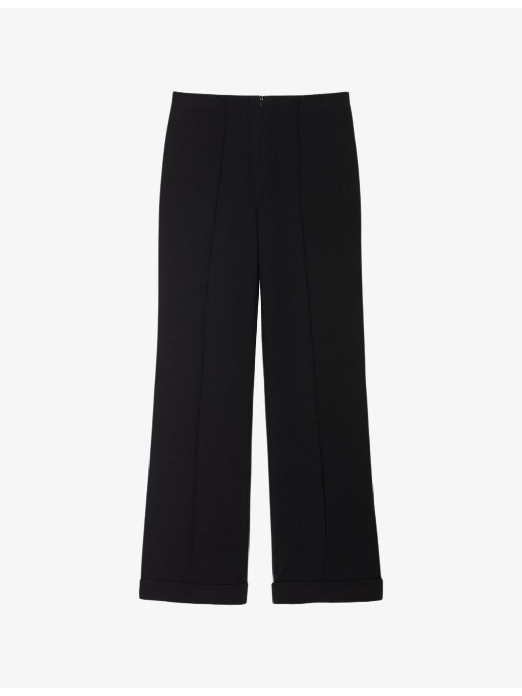 PRODUCT DETAILS - Sandro stretch-woven trousers - 68% viscose, 28% polyamide, 4% elastane - Concealed zip fastening - Regular fit, high rise, creases at the centre, straight leg, wide turn-up hem - Dry clean - True to size - Model is 5ft 9in/1.75m and wears a size UK 8 - Midweight, slight stretch Ref: R04501129
