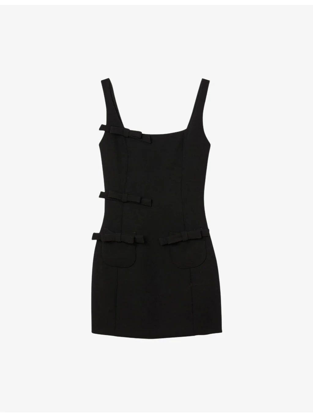 PRODUCT DETAILS - Sandro woven dress - 100% polyester - Concealed zip fastening at side - Slim fit, square neck, strappy design, sleeveless, bow embellishment - Dry clean - True to size - Model is 5ft 9in/1.75m and wears a size UK 8 - Midweight, non-stretch Ref: R04501131