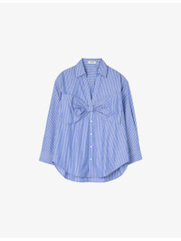 PRODUCT DETAILS - Sandro cotton shirt - 100% cotton - Button fastening - Regular fit, collar, V-neck, long sleeves, buttoned cuffs, bow embellishment, all-over striped pattern - Machine wash mild - True to size - Model is 5ft 9in/1.75m and wears a size UK 8 - Lightweight, non-stretch Ref: R04490510