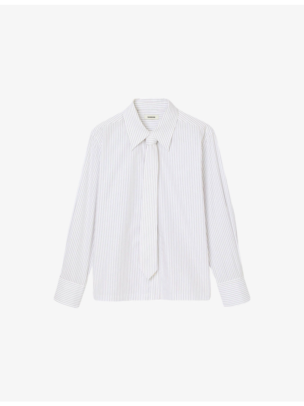 PRODUCT DETAILS - Sandro cotton shirt - 100% cotton - Button fastening - Pointed collar, long sleeves, buttoned cuffs, removable tie, all-over striped pattern - Machine wash at 30°C - Made in Tunisia - True to size - Lightweight, non-stretch Ref: R04493084