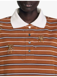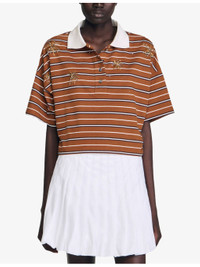 PRODUCT DETAILS - Sandro cotton-jersey T-shirt - 100% cotton - Button fastening - Relaxed fit, polo collar, short sleeves, rhinestone embellishment, all-over striped pattern - Hand wash - True to size - Model is 5ft 9in/1.75m and wears a size UK 8 - Lightweight, slight stretch Ref: R04501145