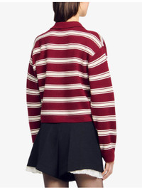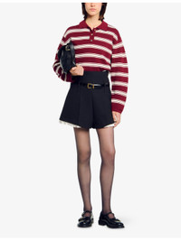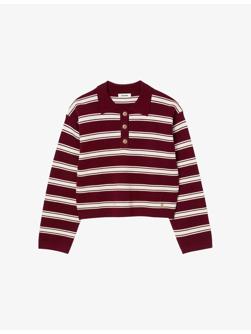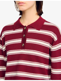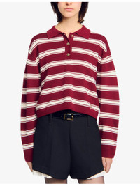 PRODUCT DETAILS - Sandro wool-blend jumper - 52% wool, 48% acrylic - Button fastening - Relaxed fit, polo collar, long sleeves, all-over striped pattern - Hand wash - True to size - Model is 5ft 10in/1.78m and wears a size UK 8 - Midweight, slight stretch Ref: R04490568