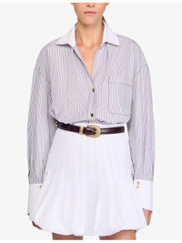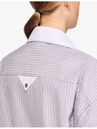 PRODUCT DETAILS - Sandro cotton shirt - 100% cotton - Button fastening - Relaxed fit, collar, long sleeves, buttoned cuffs, chest pocket, contrast trim, all-over striped pattern - Dry clean - True to size - Model is 5ft 9in/1.75m and wears a size UK 8 - Lightweight, non-stretch Ref: R04492194