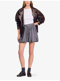 PRODUCT DETAILS - Sandro cotton mini skirt - 100% cotton - Zip fastening - Regular fit, high-rise, bubble hem, all-over striped pattern, all-over rhinestone embellishment - Hand wash - True to size - Model is 5ft 10in/1.78m and wears a size UK 8 - Lightweight, non-stretch Ref: R04490575