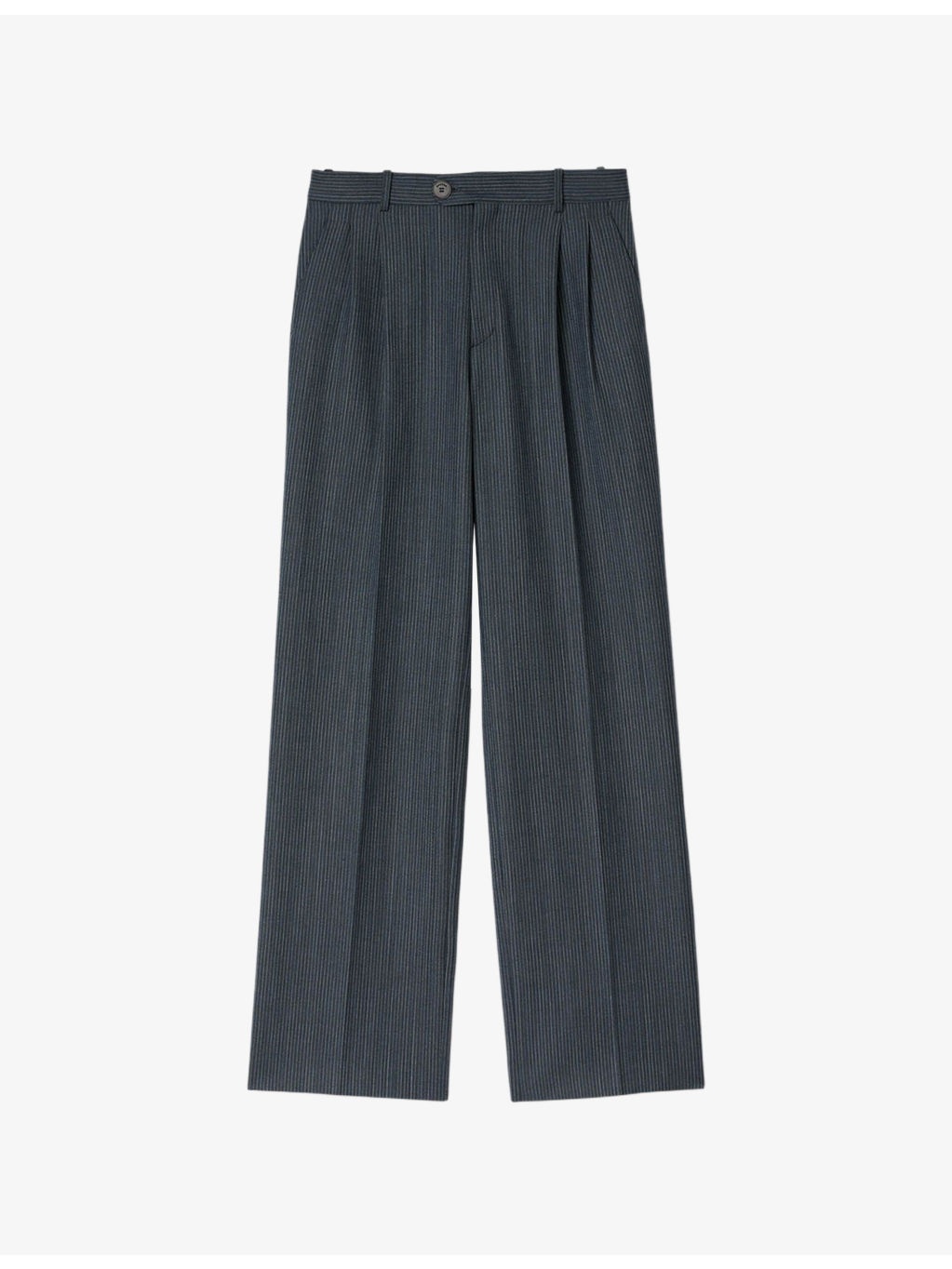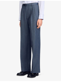 PRODUCT DETAILS - Sandro stretch-woven trousers - 52% polyester, 27% wool, 17% viscose, 4% elastane - Button, hook-and-eye and zip-fly fastening - Relaxed fit, mid-rise, belt loops, two pockets at the side, stripe pattern, straight leg - Dry clean - True to size - Model is 5ft 10in/1.78m and wears a size UK 8 - Lightweight, slight-stretch Ref: R04490612