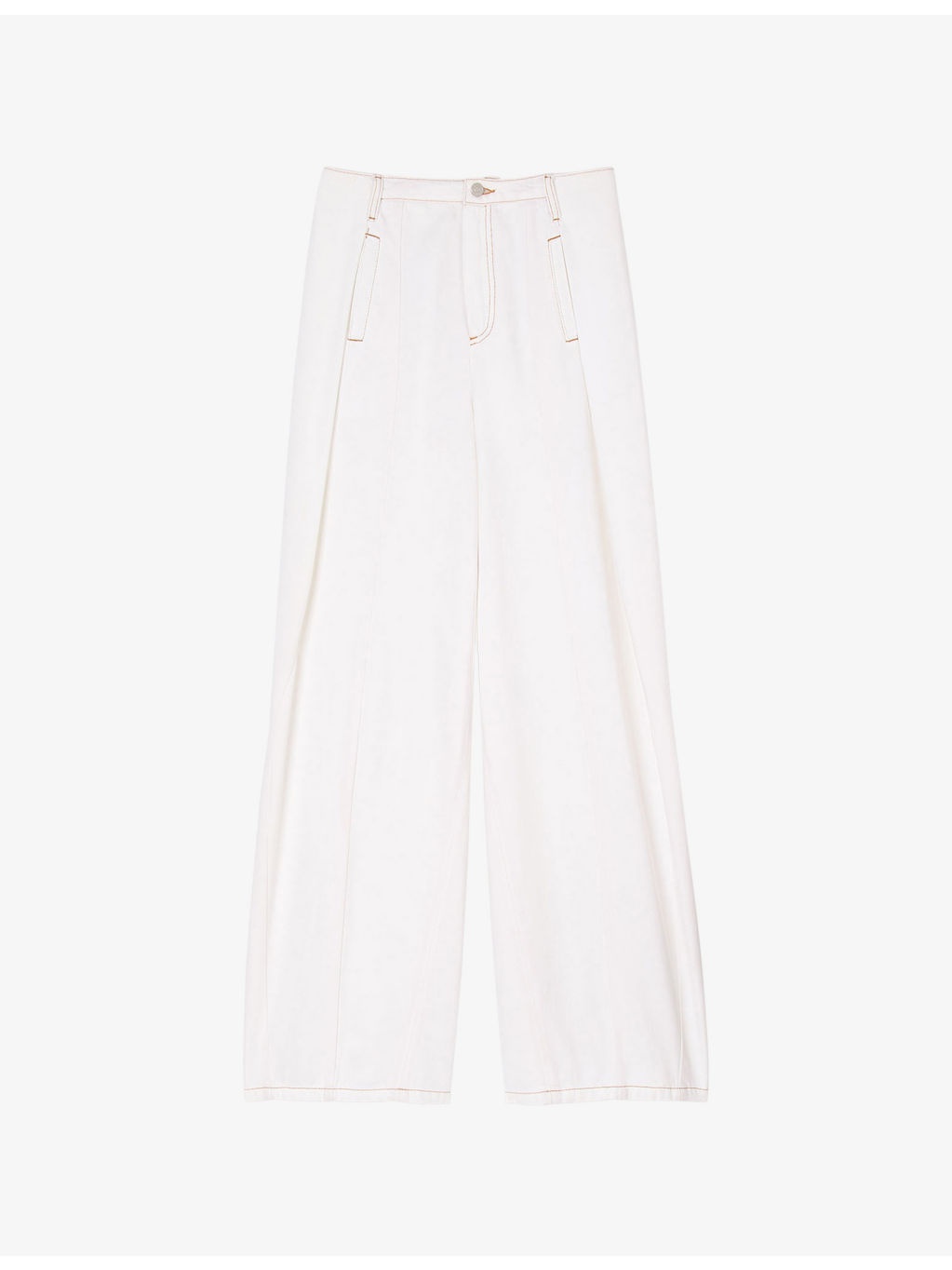 PRODUCT DETAILS - Sandrodenim jeans - 100% cotton - Button and zip-fly fastening - Regular fit, mid-rise, wide leg, belt loops, side panels, side pockets, topstitching - Machine wash mild - True to size - Model is 5ft 10in/1.78m and wears a size UK 8 - Midweight, non-stretch Ref: R04411936