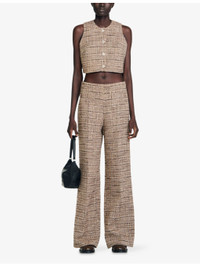 PRODUCT DETAILS - Sandro cotton-blend trousers - 48% cotton, 26% acrylic, 11% polyamide, 9% polyester, 5% viscose, 1% metalized fibers - Concealed zip fastening at side - Regular fit, high rise, faux welt pockets at the front, wide leg, all-over tweed texture - Dry clean - True to size - Model is 5ft 9in/1.75m and wears a size UK 8 - Midweight, non-stretch Ref: R04501226
