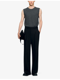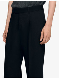 PRODUCT DETAILS - Sandro stretch-wool trousers - 98% wool, 2% elastane - Button and zip-fly fastening - Regular fit, mid-rise, wide leg, side pockets, back pockets, pressed pleats - Dry clean - True to size - Model is 6ft 1in/1.85m and wears a size UK 38 - Lightweight, slight stretch Ref: R04506021