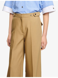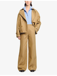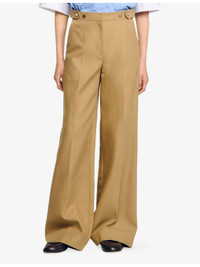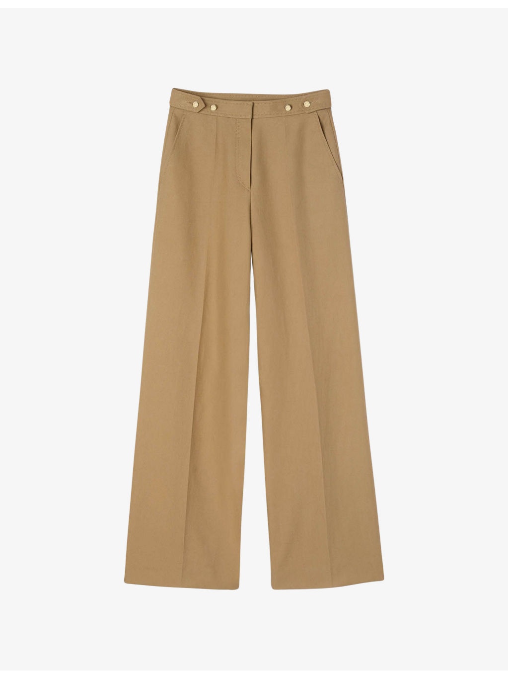 PRODUCT DETAILS - Sandro cotton trousers - 100% cotton - Button and zip-fly fastening - Regular fit, high-rise, wide leg, side adjusters, side pockets, back flap pockets, pressed creases - Dry clean - True to size - Model is 5ft 10in/1.78m and wears a size UK 8 - Lightweight, non-stretch Ref: R04490514