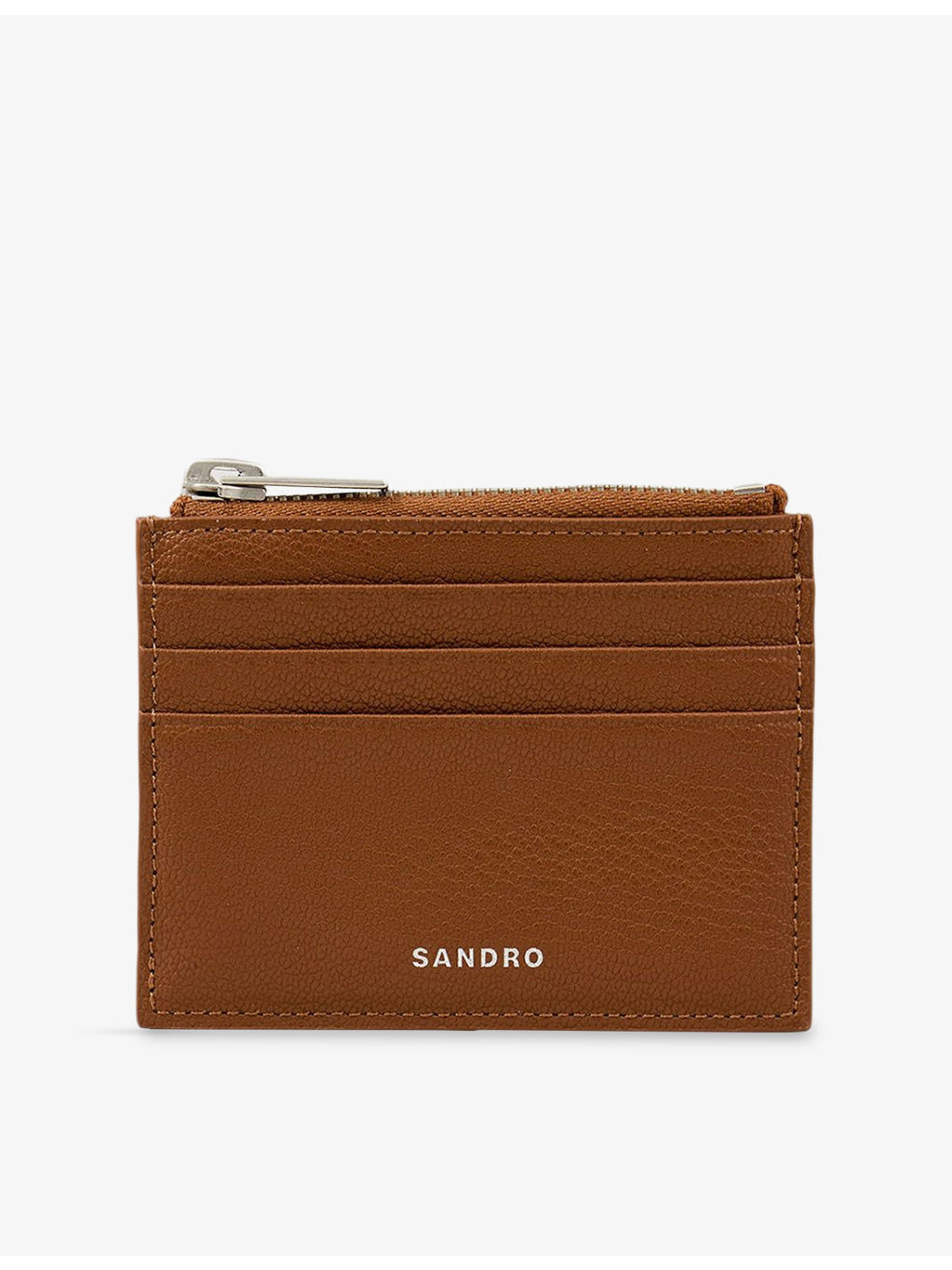 PRODUCT DETAILS - Sandro leather card holder - 100% leather - Exposed zip fastening - Square silhouette, logo embossed at the front, zipped pocket, silver-tone hardware - Height 8.5cm, width 10.5cm, depth 0.3cm - Specialist leather clean Ref: R04505957