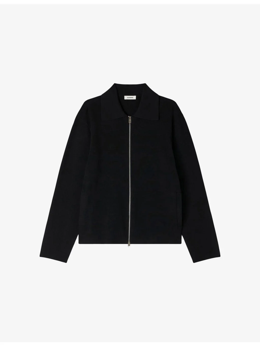 PRODUCT DETAILS - Sandro stretch-knit cardigan - 60% viscose, 24% polyester, 14% polyamide, 2% elastane - Exposed zip fastening - Regular fit, collared, long sleeves, zip detail, silver-tone hardware - Hand wash - Model is 6ft 2in/1.88m and wears a size medium - Midweight, slight stretch Ref: R04578773