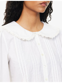 PRODUCT DETAILS - Sandy Liang cotton shirt - 100% cotton - Button fastening - Round collar, long sleeves, front and back pleats, embroidered logo at bows at front, broderie-anglaise-trim around collar - Machine wash mild - True to size - Size small: length 20in / 50.8cm - Model is 5ft 10in/1.78m and wears a size small - Lightweight, non-stretch Ref: R04488306
