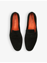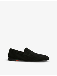 PRODUCT DETAILS - Santoni suede loafers - 100% suede - Slips on - Almond toe, apron stitching, raised borders, penny detail to the front, branded insole - Specialist leather clean - Upper: 100% leather - Lining: 100% leather - Sole: 100% leather Ref: R04389191