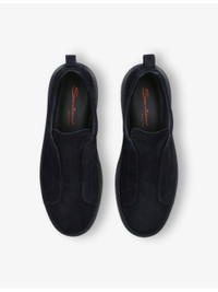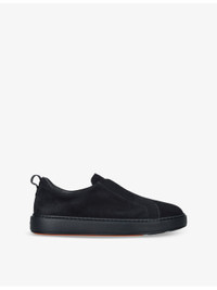 PRODUCT DETAILS - Santoni suede trainers - 100% leather - Slips on - Round closed toe, pull tab, branding at side, contrasting sole - Specialist leather clean - Made in Italy - Upper: 100% leather - Lining: 100% leather - Sole: 100% rubber Ref: R04389204