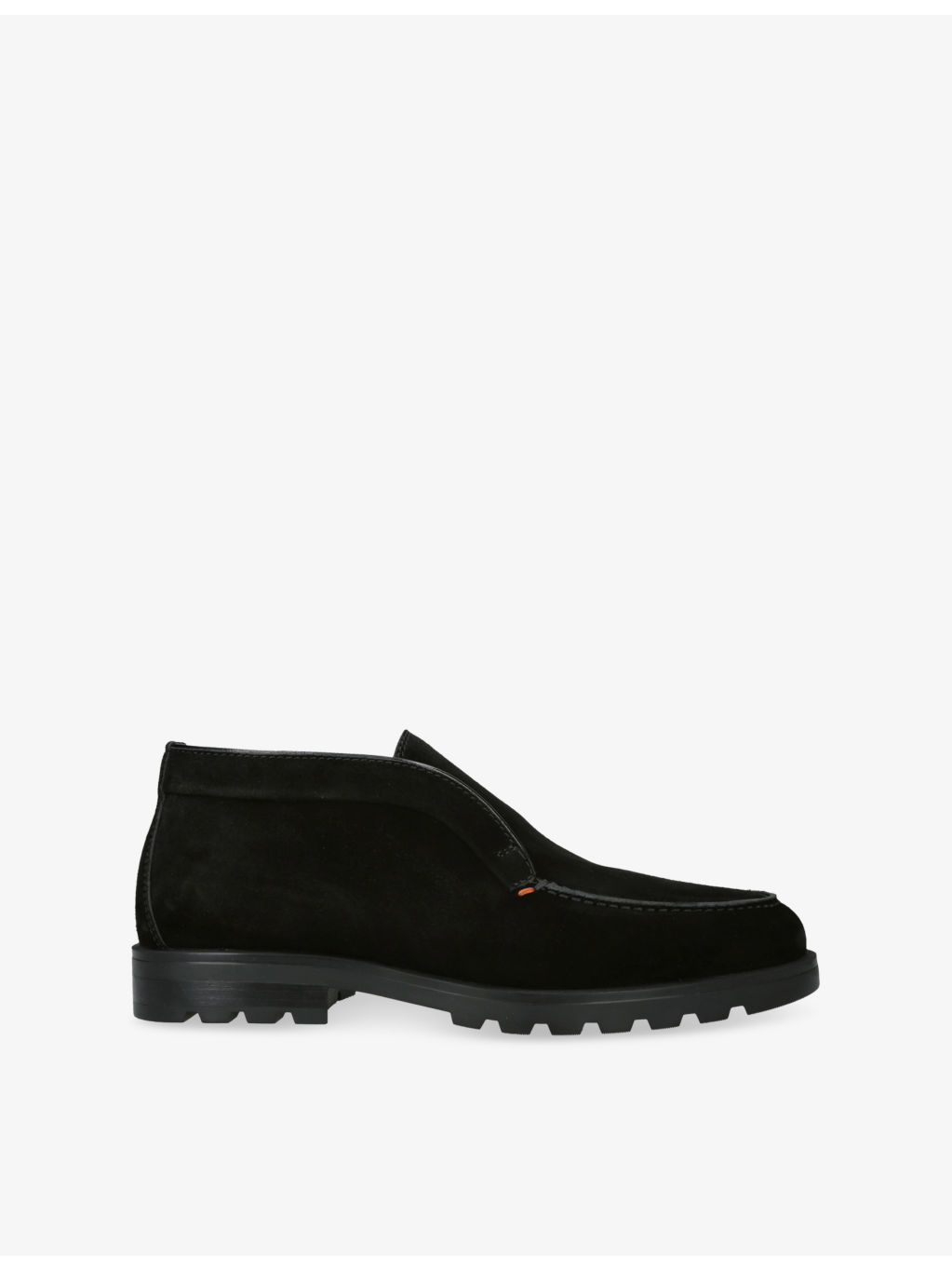 PRODUCT DETAILS - Santoni suede loafers - Almond closed toe, apron stitching, contrast stitch detail at side, branded insole, chunky sole - Specialist leather clean - Upper: 100% suede - Lining: 100% leather - Sole: 100% rubber Ref: R04393798