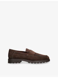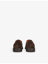 PRODUCT DETAILS - Santoni suede loafers - 100% suede - Almond closed toe, apron stitching, penny detail at the front, branded insole, tread sole - Specialist leather clean - Made in Italy - Upper: 100% suede - Lining: 100% leather - Sole: 100% rubber Ref: R04473801