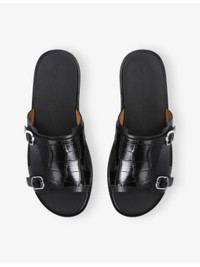 PRODUCT DETAILS - Santoni leather monk sandals - 100% leather - Buckle fastening - Round open toe, double-buckle strap, silver-toned hardware, tonal stitching, croc-effect - Specialist leather clean - Made in Italy - Upper: 100% leather - Lining: 100% leather - Sole: 100% leather Ref: R04462540