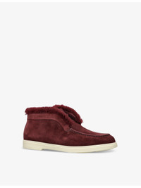 PRODUCT DETAILS - Santoni suede ankle boots - 100% suede - Slips on - Round closed toe, faux-fur edging, embossed branding at back - Specialist leather clean - Made in Italy - Upper: 100% suede - Lining: 100% fur - Sole: 100% rubber Ref: R04396421