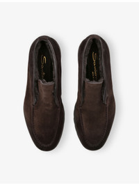 PRODUCT DETAILS - Santoni suede desert boots - 100% suede - Side-buckle fastening - Closed almond toe, apron stitching at front, ankle length, shearling lining, tread sole - Specialist leather clean - Upper: 100% suede - Lining: 100% sheepskin - Sole: 100% rubber Ref: R04449900
