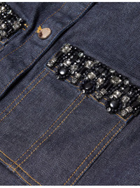 Crystal Short-Sleeves Stretch-Denim Blend Mini Dress