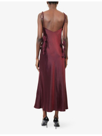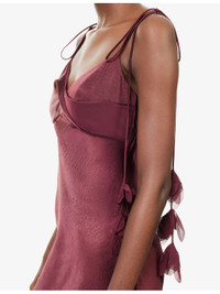 PRODUCT DETAILS - Self-Portrait woven midi dress - 100% polyester - Regular fit, V-neck, wrap front, dangling crepe flower embellishment at shoulder straps, all-over satin texture - Dry clean only - True to size - Size UK 8: length 52in / 132cm - Model is 5ft 10in/1.78m and wears a size UK 8 - Lightweight, stretchy Ref: R04571647