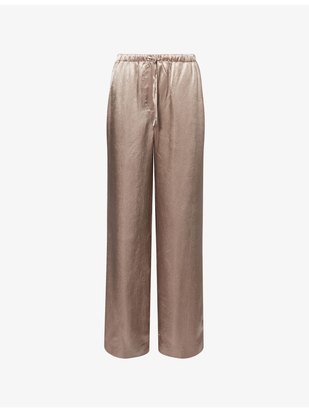 PRODUCT DETAILS - Simkhai satin trousers - 100% acetate; lining 100% polyester - Self-tie fastening - Elasticated drawstring straight leg, waist, two slip pockets at front, two welt pockets at back, all-over crinkle effect, fully lined - Dry clean - True to size - Model is 5ft 10in / 1.78m and wears a size UK 10 - Lightweight, non-stretch Ref: R04496792