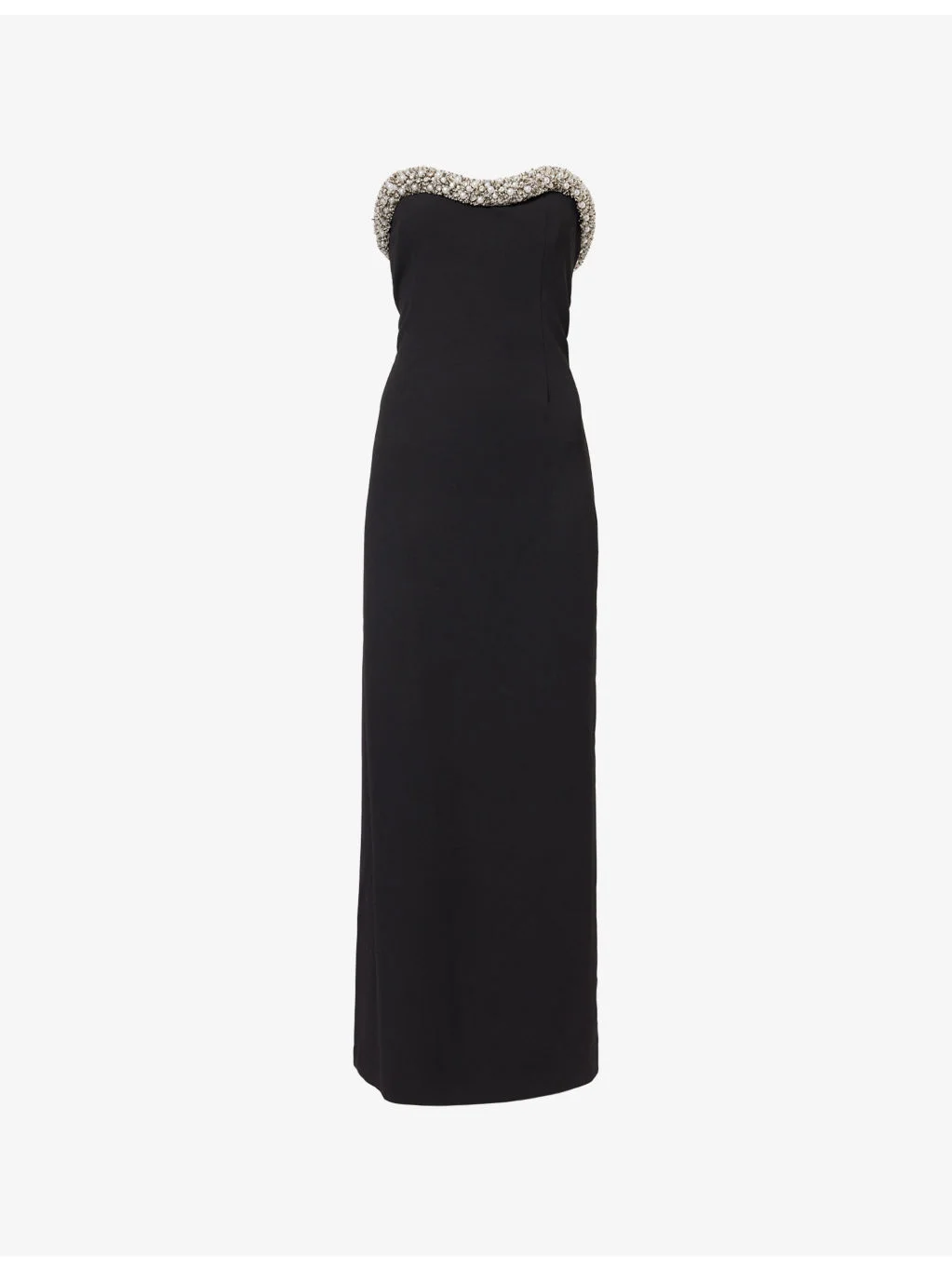 PRODUCT DETAILS - Simkhai woven maxi dress - 97% polyester, 3% elastane - Concealed zip fastening at back - Regular fit, strapless, beaded embellished neckline, straight-cut, slit hem at back, maxi length, fully lined - Dry clean - True to size - Size UK 8: length 51in / 129.5cm - Model is 5ft 10in/1.78m and wears a size UK 8 - Midweight, non-stretch Ref: R04564502