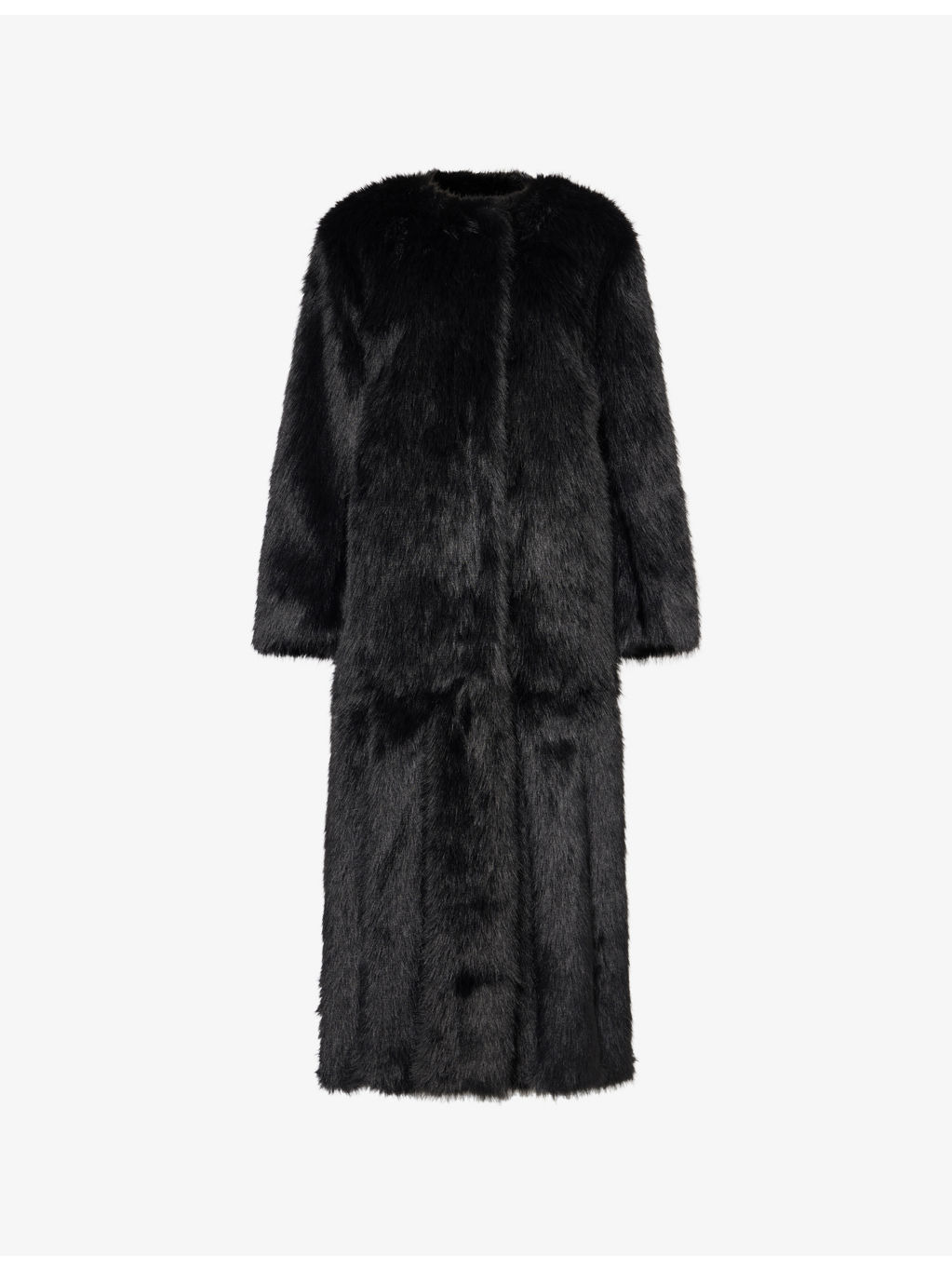 PRODUCT DETAILS - Simone Rocha faux-fur coat - 100% polyester; lining 100% viscose - Concealed hook-and-eye fastening at front - Relaxed fit, round-neck, long sleeves, two slip pockets at front, all-over faux-fur texture, fully lined, multi-split hem - Dry clean - Made in Portugal - True to size - Size UK 8: length 50in / 127cm - Model is 5ft 10in/1.78m and wears a size UK 8 - Midweight, non-stretch Ref: R04486753
