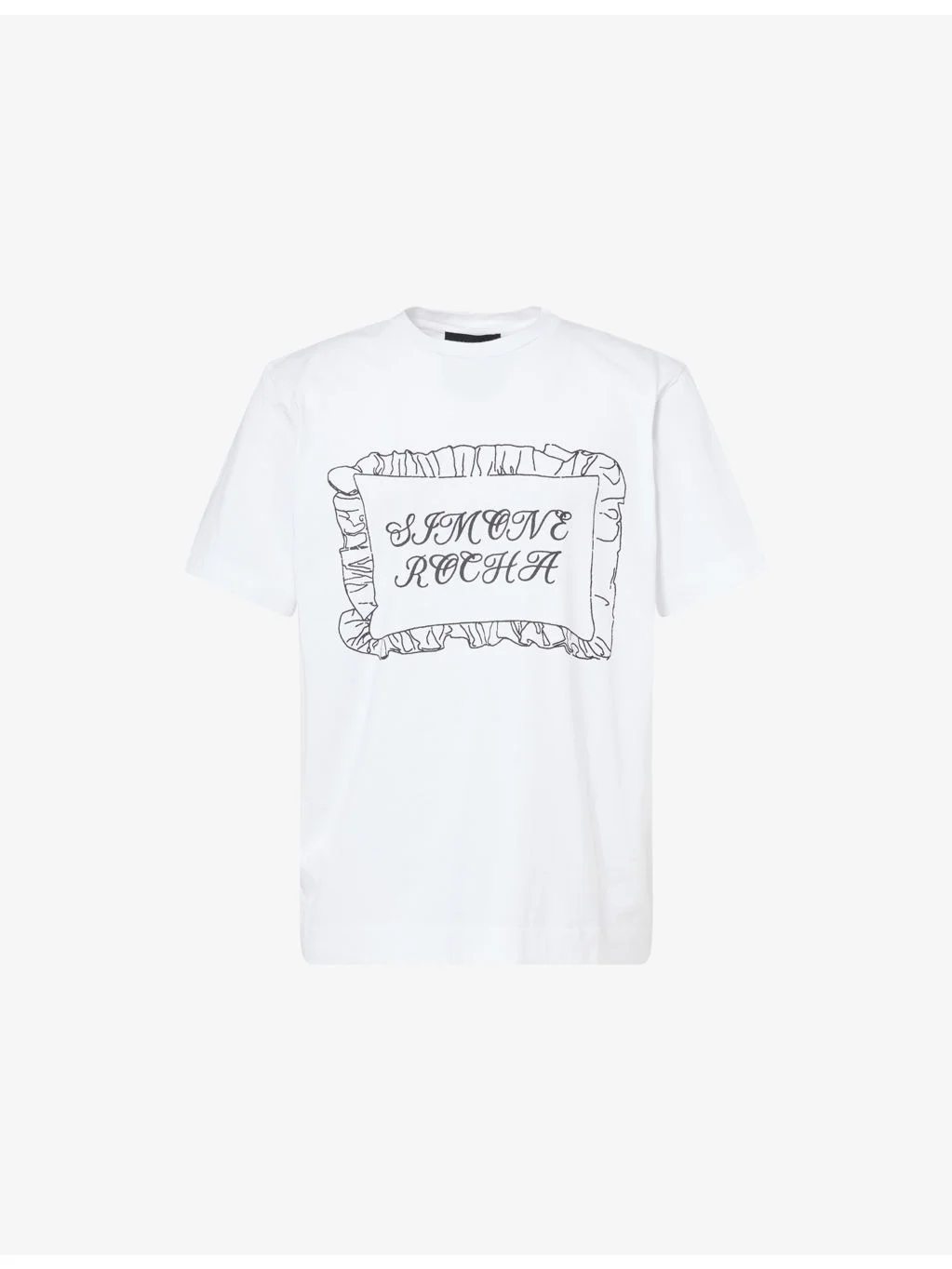 PRODUCT DETAILS - Simone Rocha cotton T-Shirt - 100% cotton - Pulls on - Crewneck, short sleeves, graphic print at front - Machine wash mild - Model is 6ft 2in/1.88m and wears a size medium - Lightweight, non-stretch Ref: R04578430