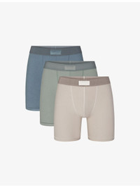 PRODUCT DETAILS - SKIMS pack of three cotton-modal jersey boxer briefs - 43% cotton, 43% modal, 14% elastane - Mid-rise, elasticated waistband with jacquard brand logo, engineered pouch and gusset for comfort, clean seamlines for an invisible fit under clothing - Machine wash cold - Model is 6ft 2in/1.88m and wears a size medium - Lightweight, stretchy - For hygiene reasons, we are unable to exchange or refund this product, unless faulty. Ref: R04502313