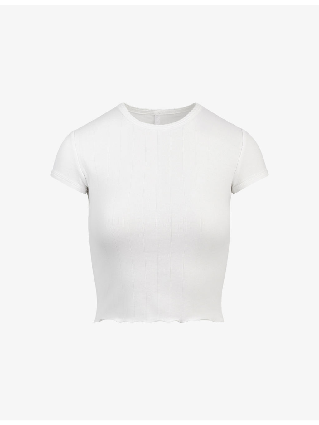 PRODUCT DETAILS - SKIMS stretch-cotton T-shirt - 95% cotton, 5% elastane - Shrunken fit, crew neckline, scallop edge, rib binding at neckline and armhole, short sleeves, merrow edge at hem - Machine wash cold - True to size - Lightweight, stretchy Ref: R04468866