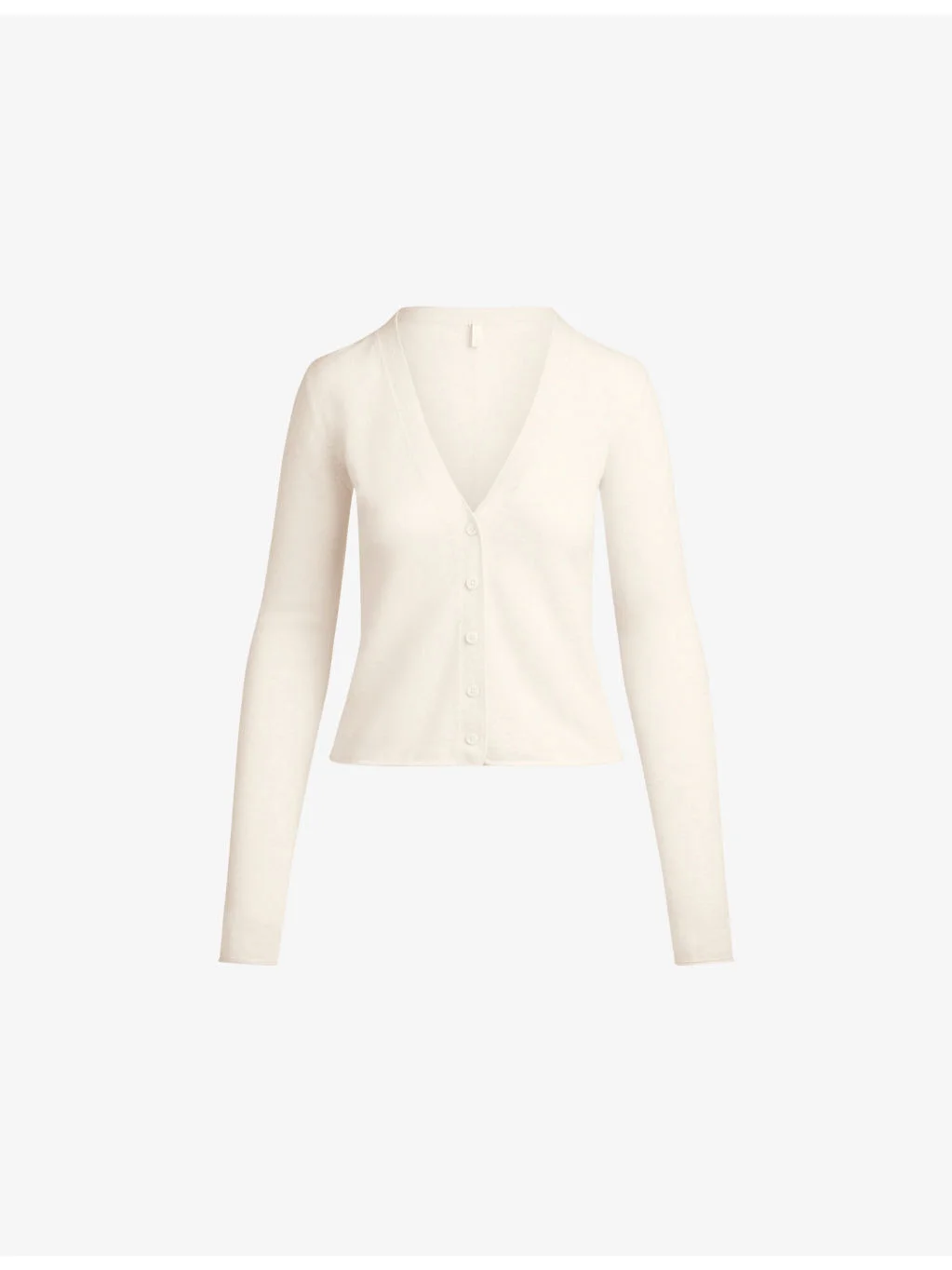 PRODUCT DETAILS - SKIMS cashmere cardigan - 100% cashmere - Exposed button fastening at front - Slim fit, V-neck, long sleeves, fine-knit texture, grade A cashmere - Hand wash - True to size - Model is 5ft 10in/1.78m and wears a size small - Lightweight, non-stretch Ref: R04538133