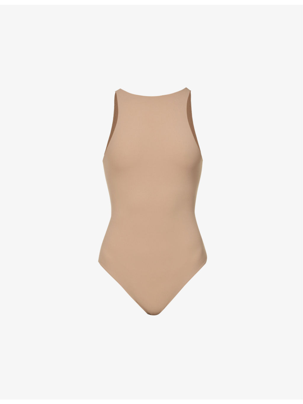 PRODUCT DETAILS - SKIMS stretch-woven body - 76% nylon, 24% elastane - Exposed popper fastening at gusset - Scoop neck, sleeveless, fitted, seamless, tonal stitching, v-string at back - Machine wash cold - True to size - Lightweight, stretchy Ref: R03758991-S-S-S
