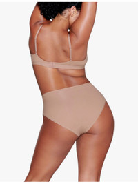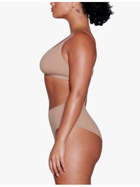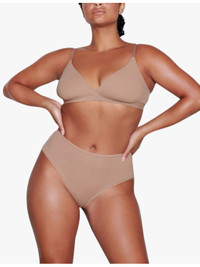 PRODUCT DETAILS - SKIMS stretch-woven bra - 76% polyamide, 24% elastane - Concealed fastening at back - V-neck, adjustable shoulder straps, soft triangle cups, gathered at chest, elasticated under band, mesh panels at interior, fully lined - Machine wash cold - True to size - Lightweight, slight stretch