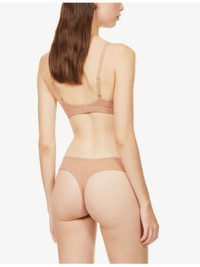 PRODUCT DETAILS - SKIMS stretch-woven bra - 76% polyamide, 24% elastane - Concealed fastening at back - V-neck, adjustable shoulder straps, soft triangle cups, gathered at chest, elasticated under band, mesh panels at interior, fully lined - Machine wash cold - True to size - Lightweight, slight stretch Ref: R03958591-S