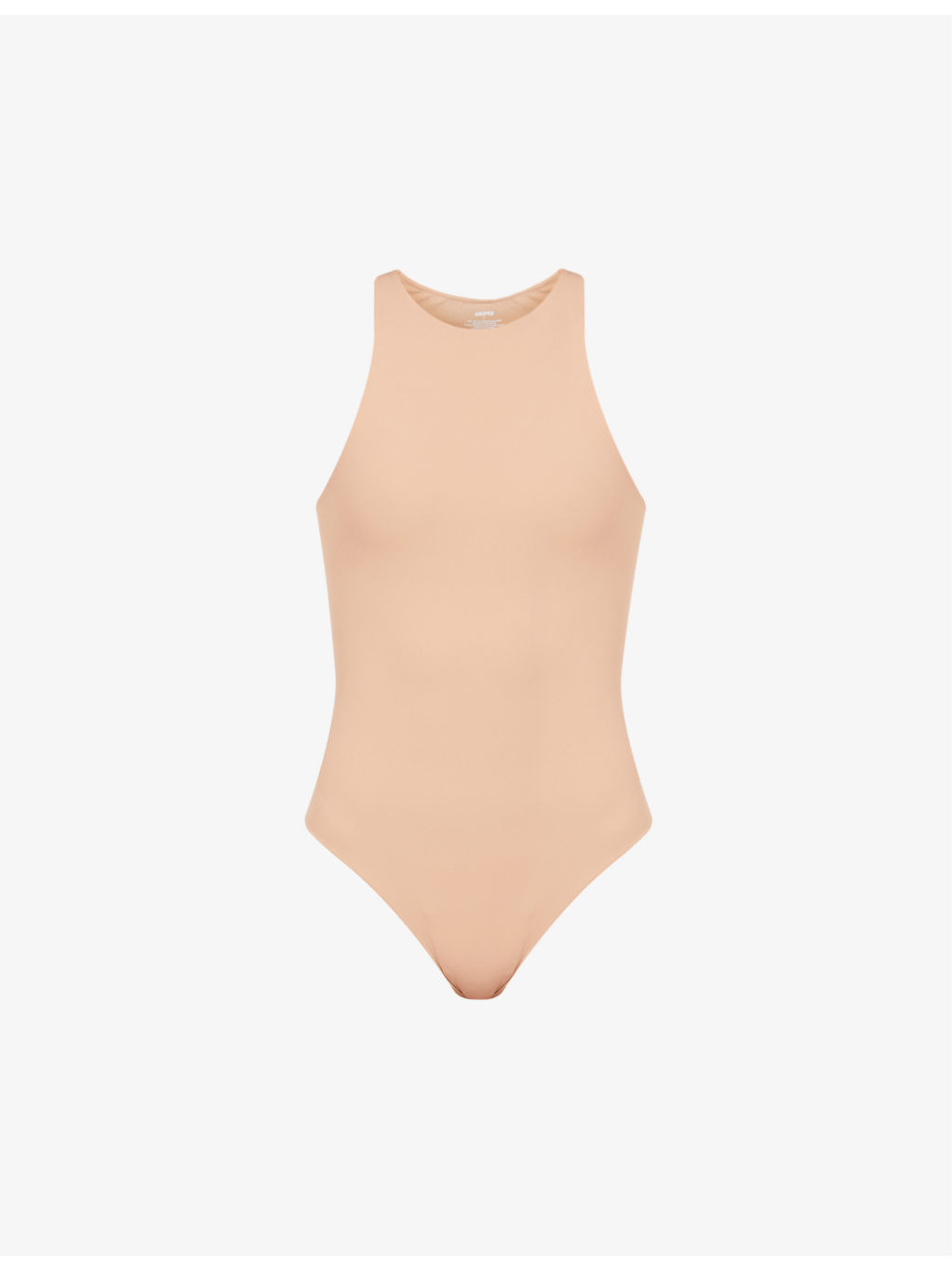 PRODUCT DETAILS - SKIMS stretch-woven body - 76% nylon, 24% elastane - Exposed popper fastening at gusset - Scoop neck, sleeveless, fitted, seamless, tonal stitching, v-string at back - Machine wash cold - True to size - Lightweight, stretchy Ref: R03758991-S-S