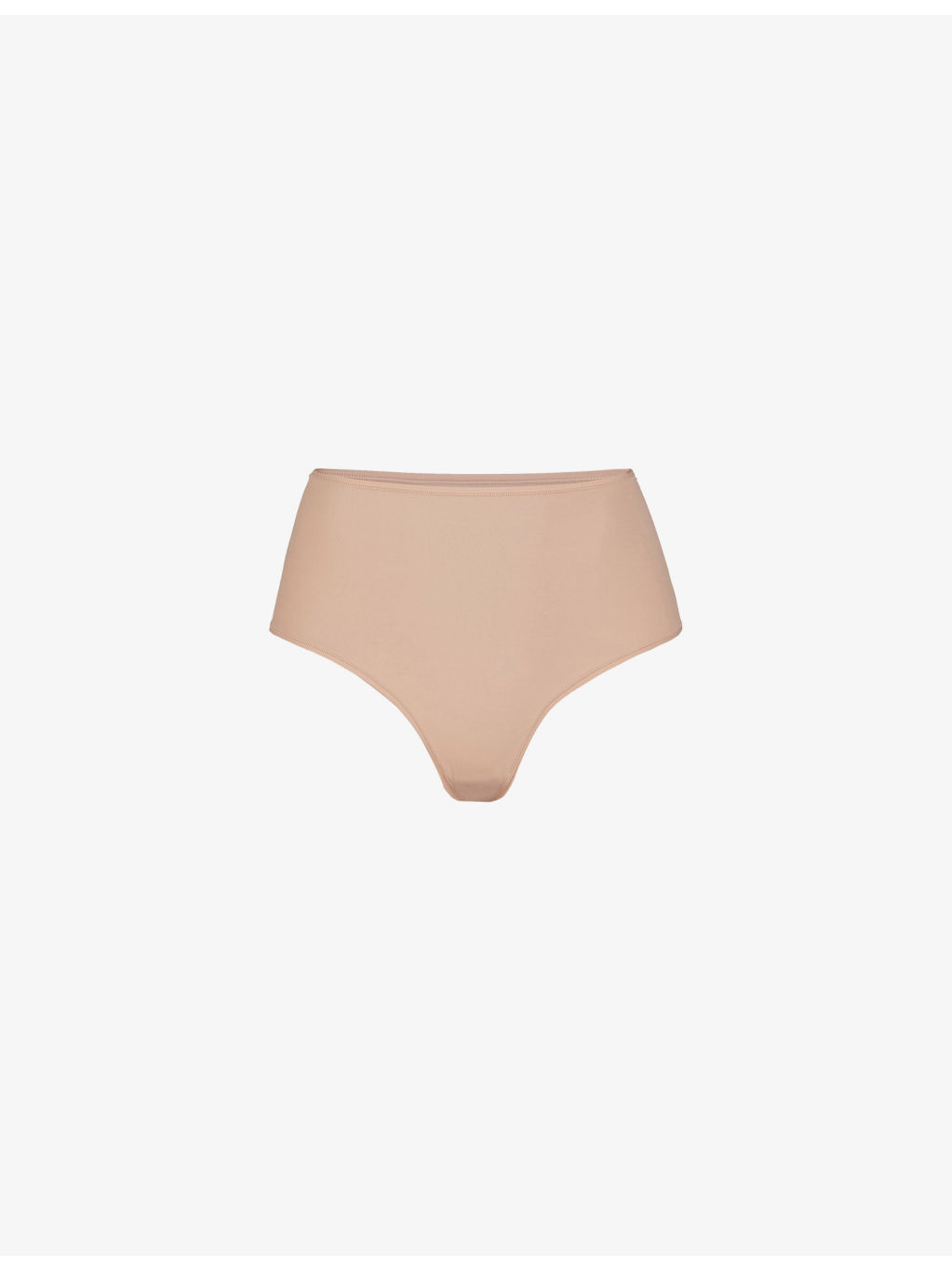 PRODUCT DETAILS - SKIMS stretch-jersey thong - 79% nylon, 21% elastane; lining 100% cotton - Slips on - Fitted, high rise, elasticated waistband, seamless construction, low coverage at back - Machine wash cold - True to size - Lightweight, stretchy Ref: R03817166