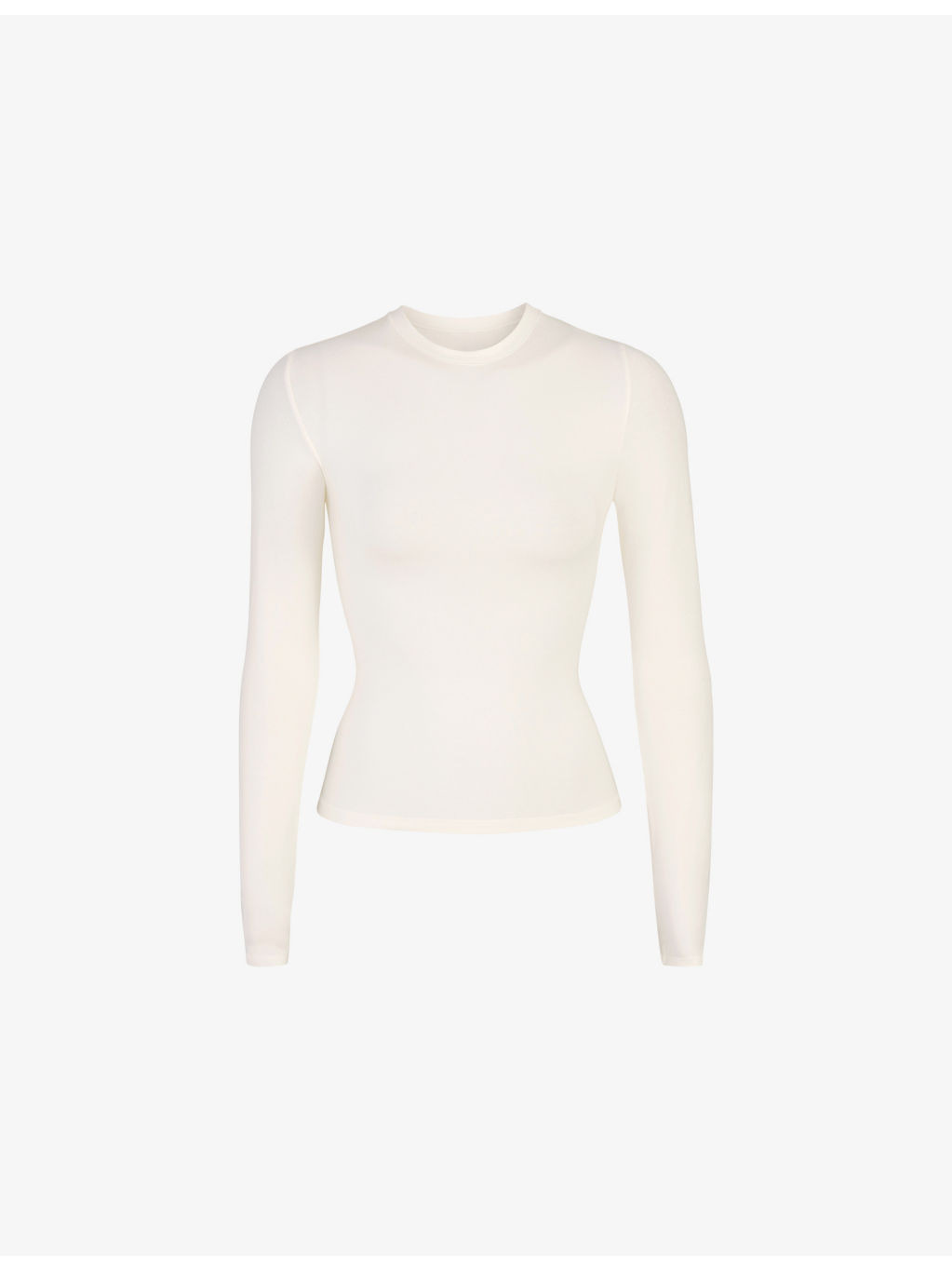 PRODUCT DETAILS - SKIMS stretch-cotton T-shirt - 90% cotton, 10% elastane - Slips on - Fitted, long sleeves, round neck - Machine wash cold - Lightweight, stretchy Ref: R04069037