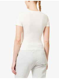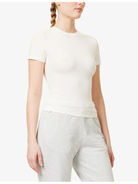 PRODUCT DETAILS - SKIMS stretch-cotton T-shirt - 90% cotton, 10% elastane - Slips on - Slim fit, ribbed round neck, short sleeves, plain colour - Machine wash cold - True to size - Model is 5ft 10in/1.78m and wears a size small - Lightweight, stretchy Ref: R04389615