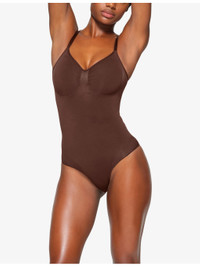 PRODUCT DETAILS - SKIMS stretch-woven body - 82% nylon, 18% elastane - Snap fastening - Fitted, seamless, scoop neck, ruched detail, adjustable straps - Machine wash cold - True to size - Lightweight, stretchy Ref: R04134829