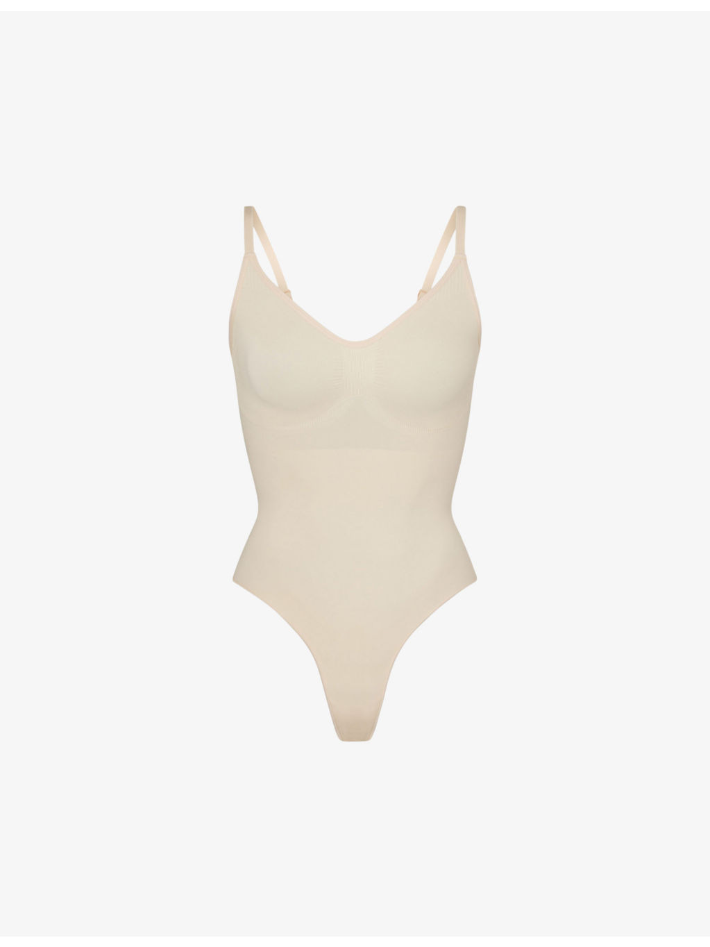 PRODUCT DETAILS - SKIMS fitted stretch-woven body - 82% nylon, 18% elastane - Slips on - Fitted, V-neck, sleeveless, ruched panel, low back - Hand wash cold - True to size - Lightweight, stretchy