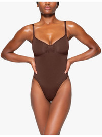 PRODUCT DETAILS - SKIMS stretch-woven thong - 82% nylon, 18% elastane - Slips on - High rise, fitted, seamless, low coverage at back - Hand wash cold - True to size - Lightweight, stretchy Ref: R04217498