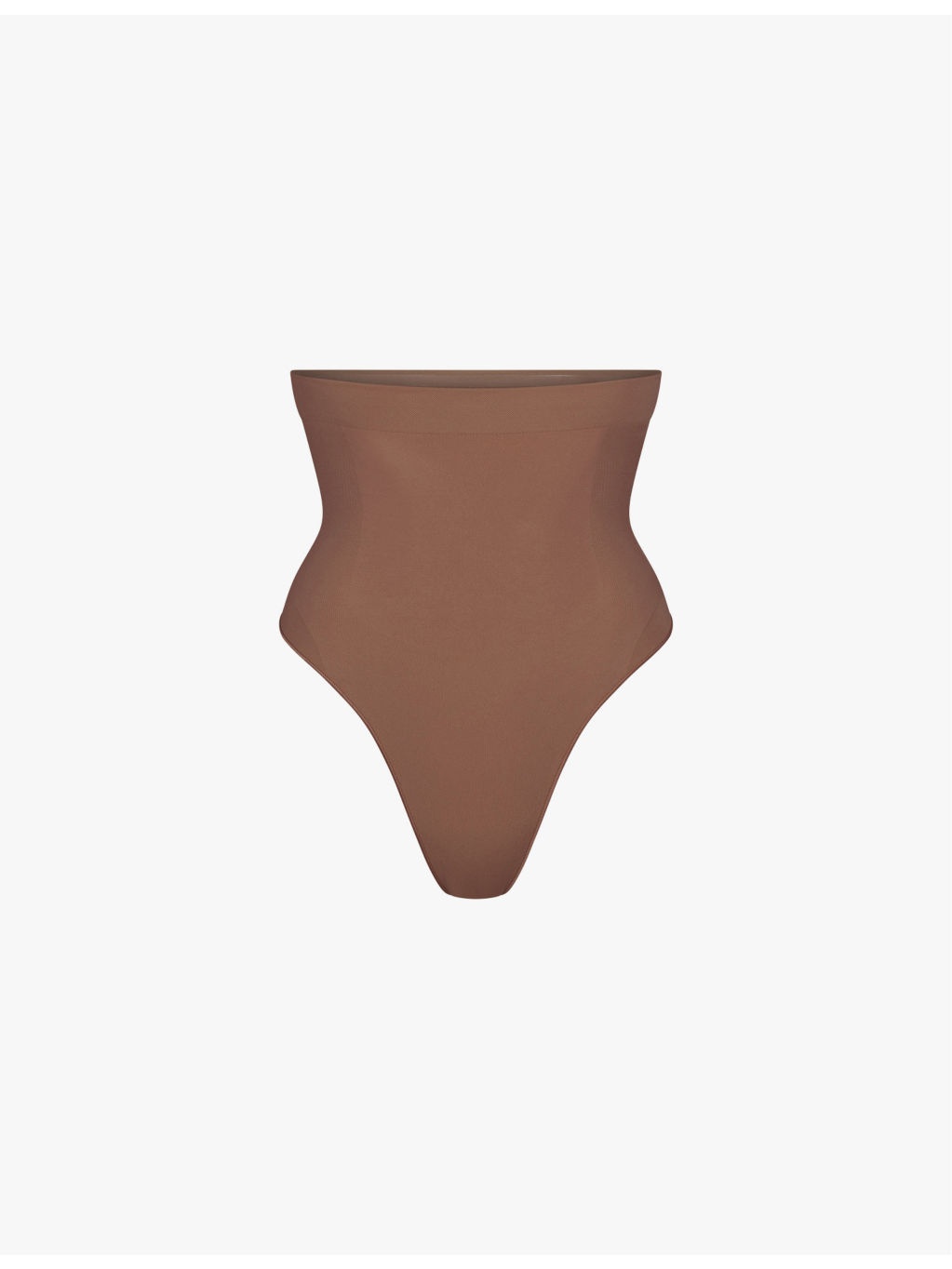 PRODUCT DETAILS - SKIMS stretch-woven thong - 82% nylon, 18% elastane - Slips on - High rise, fitted, seamless, low coverage at back - Hand wash cold - True to size - Lightweight, stretchy Ref: R04217498-S