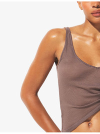 PRODUCT DETAILS - SKIMS cotton-blend tank top - 85% polyester, 15% cotton - Slim fit, plunging V-neckline, sleeveless, low back, sheer finish, airy ultra-soft ribbed fabric - Machine wash cold - True to size - Model is 5ft 10in/1.78m and wears a size small - Lightweight, stretchy Ref: R04501714